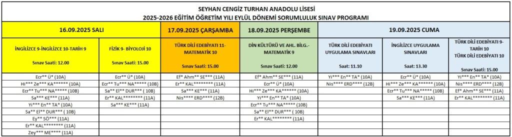 Sorumluluk sınavlarına katılacak öğrencilerimiz ve sınav programı aşağıdaki gibidir. Öğrencilerimizin isimleri filtrelenmiş bir şekilde paylaşılmıştır.
